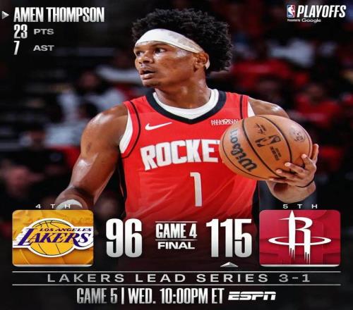 阿门23分詹姆斯9中2有8失误 湖人3-1火箭