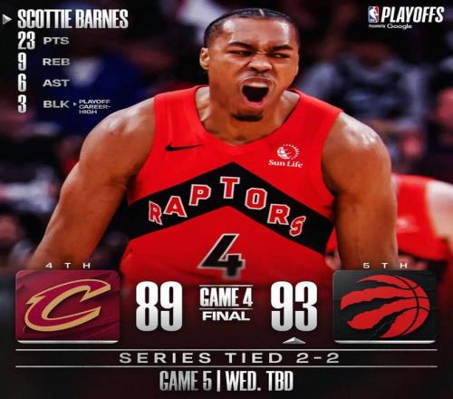 巴恩斯23+9哈登7失误 骑士2-2猛龙