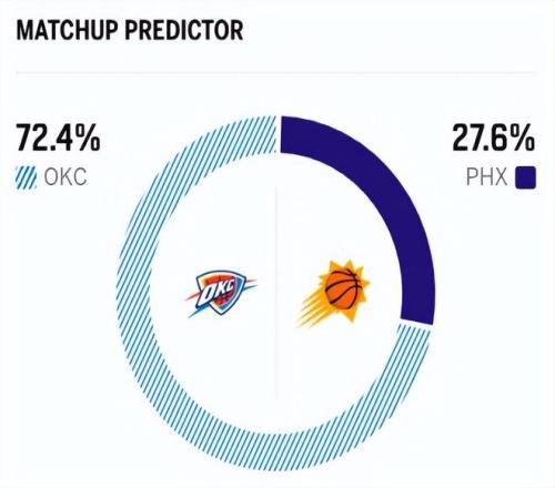 赛前,美媒ESPN对本场比赛进行了胜率预测,雷霆胜率高达72.4% ,太阳队胜率则仅为27.6% ,依旧不被看好。