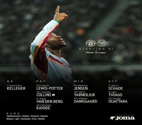 北京时间4月28日凌晨3点,英超联赛第34轮展开一场焦点战役,曼联对阵布伦特福德。赛前,双方公布首发阵容。