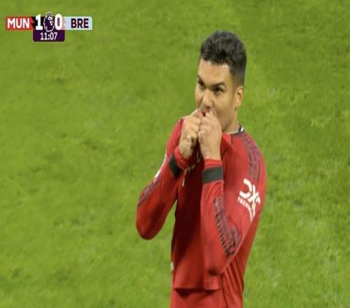 此役主场对阵布伦特福德,首发出战的卡塞米罗在比赛第11分钟头球破门,帮助曼联取得1-0领先。