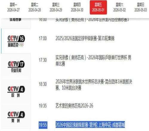 中超联赛激战正酣!5月1日20:00,中超第9轮将迎来一场重头戏,上海申花坐镇主场迎战领头羊成都蓉城,央视奥林匹克频道CCTV16、五星体育、成都公共频道将现场直播本轮焦点对决!球迷也可通过央视体育客户端、央视频、咪咕视频APP、移动高清、咪视界等平台观赛。